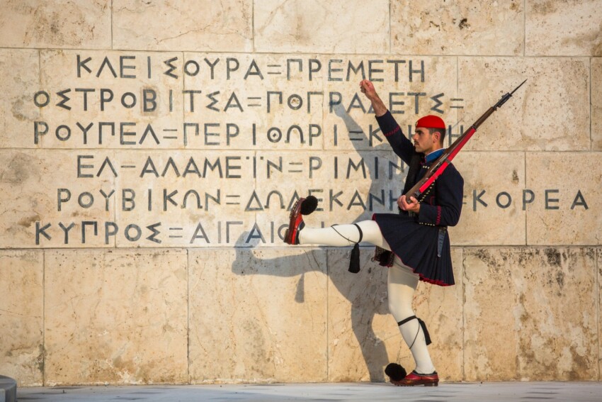 La prima tappa obbligata è piazza Syntagma per assistere al cambio della guardia al Milite Ignoto: gli Evzones sfilano in un’uniforme che è già uno spettacolo: il gonnellino con 400 pieghe, le tsarouchia (scarpe di legno chiodate col pompom) e un cerimoniale solenne, con tanto di banda militare. Un rito che non stanca mai.
