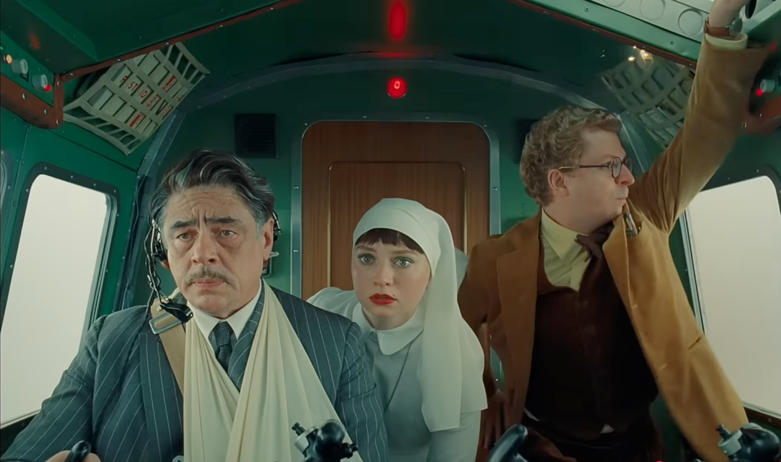 Korda, alias Benicio Del Toro è un mega magnate che sopravvive ad un numero infinito di inverosimili attentati, uscendo illeso, con solo qualche osso rotto e un paio di cerotti qui e là, da incidenti aerei, esplosioni, attentati di ogni sorta. Ambientato negli anni 50 in una regione immaginaria del Medio Oriente- chiamata Fenicia- Korda decide di designare come sua unica erede la figlia Liesl (Mia Threapleton figlia di Kate Winslet) una novizia con rossetto scarlatto che fuma la pipa e vuole prendere i voti. Non importa se i due non si vedono da anni e se a pretendere l’eredità di Korda ci sono altri 8 fratelli. Liesl in realtà non ha alcun trasporto verso il padre anzi avrebbe scelto di vivere lontana da tutto ciò che il padre rappresenta.